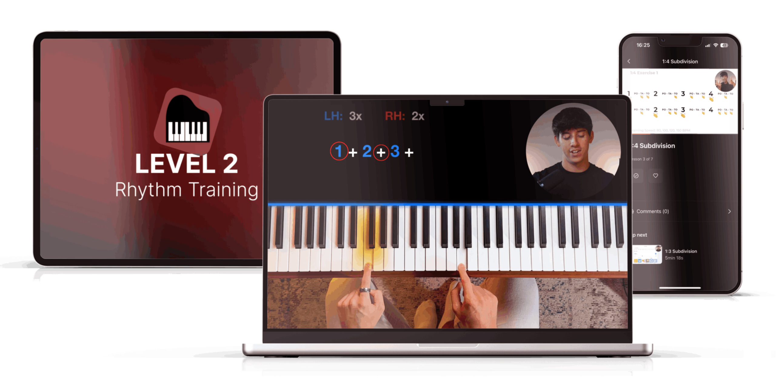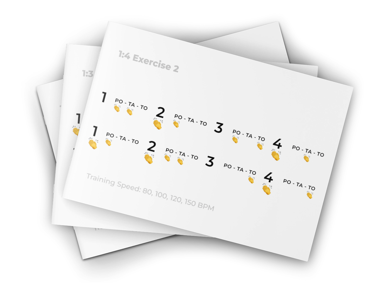 Get downloadable PDFs for all key rhythm exercises, so you can practice anywhere, anytime with structure and build daily habits that speed up your progress.